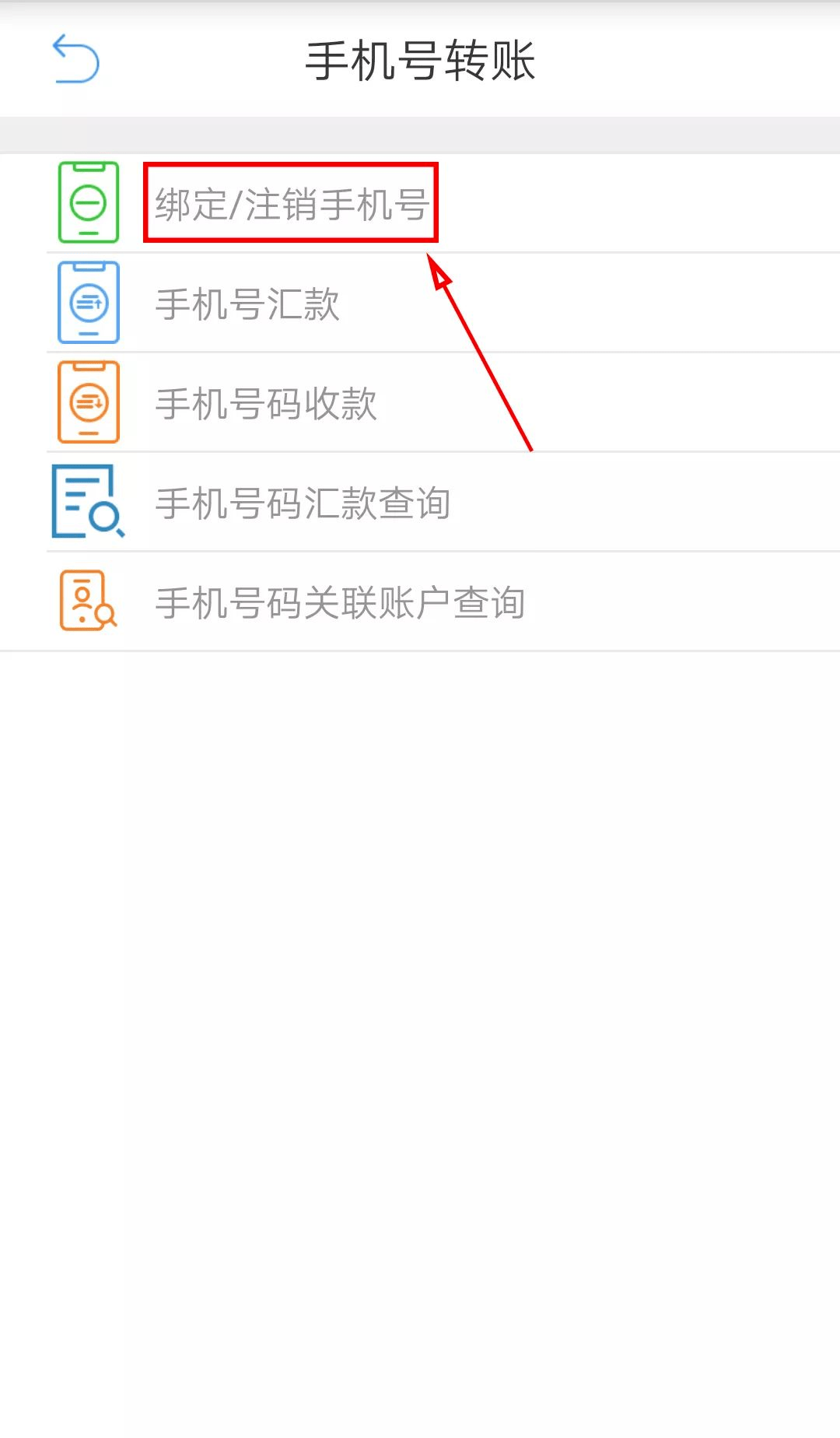 ①进入手机银行,点击“手机号转账”,若尚未注册,点击“绑定手机号”;
