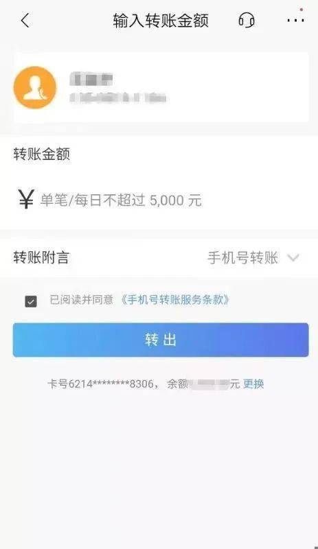 ①以某手机银行APP为例,在该手机银行APP中,找到手机号转账功能;