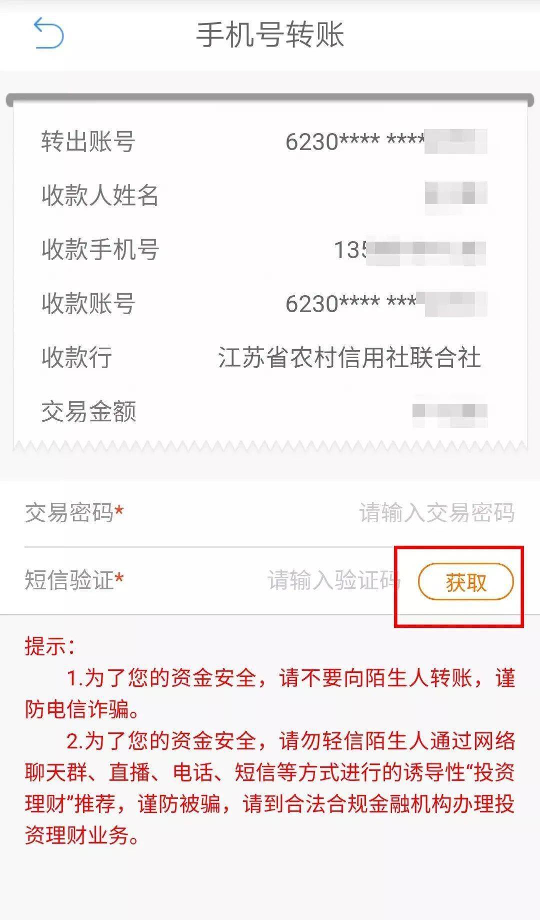 在“江苏农商银行”手机银行完成手机号码与本行账户的关联绑定,即可通过手机号码接收汇款。