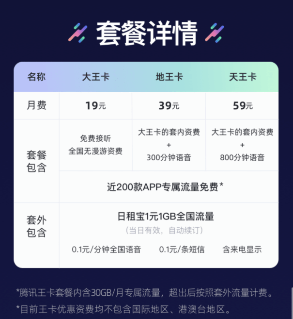19元腾讯大王卡套餐 中国联通大王卡 电信大王卡套餐 电信大王卡 电信超级大王卡 移动王卡 腾讯大王卡 移动互联网王卡