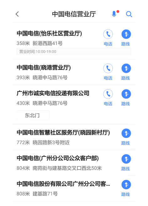 5、如果不想在网上进行激活,最简便的方便就是去附近的营业厅对手机卡进行激活就可以了。我们可以打开地图APP搜索“中国电信营业厅”就能快速找到附近的营业厅。