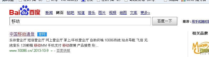 1:先打开浏览器,在百度的搜索框中输入移动,点击搜索,在百度搜索到的第一个网站,点击打开。