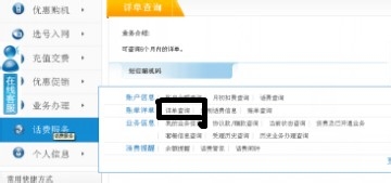 3:在网页的左栏找到话费服务,在找到详单查询。